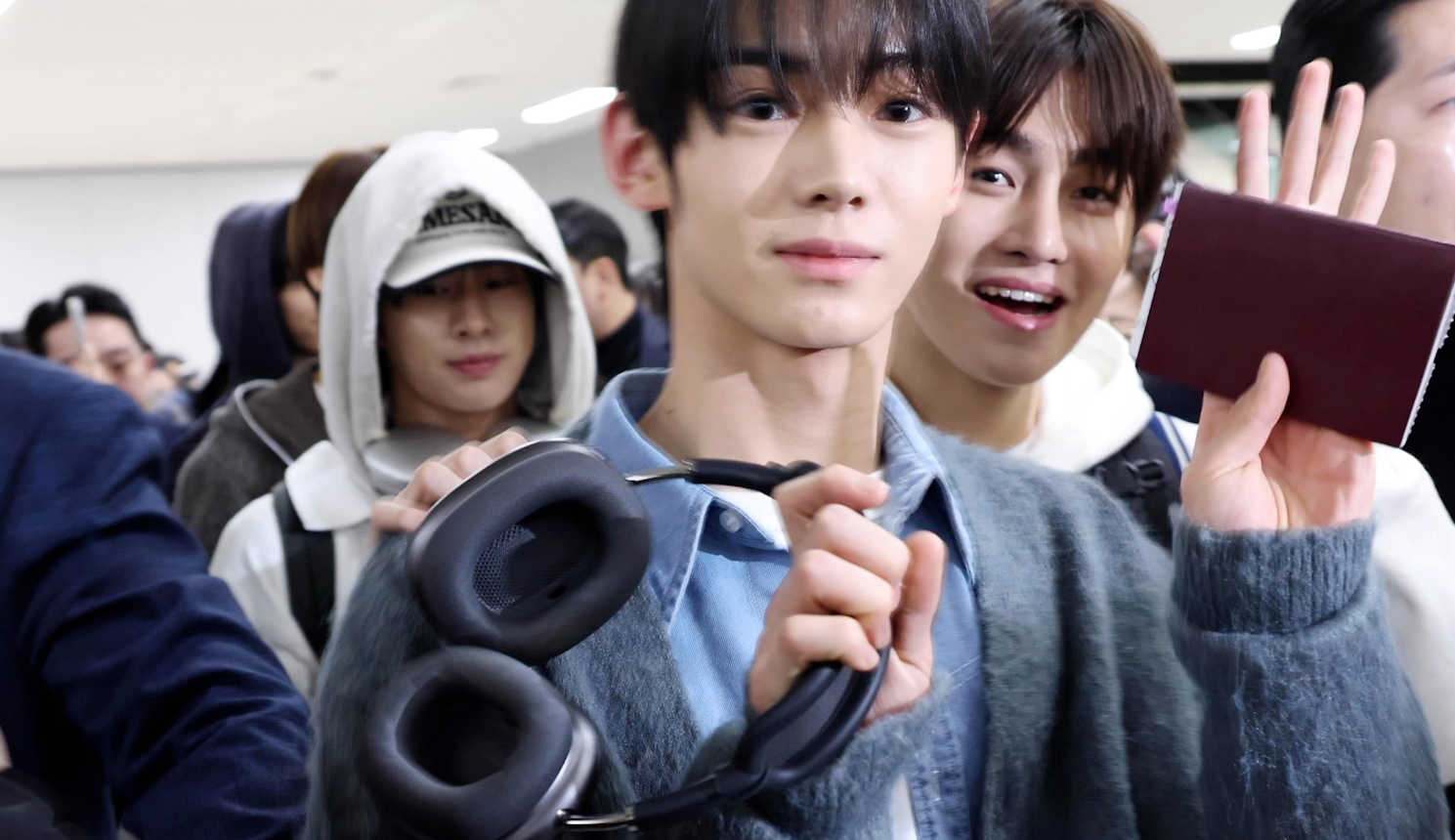 TWS (Shinyu, Dohun, Youngjae, Hanjin, Jihoon, and Kyungmin) arrive after completing their overseas schedules at Gimpo International Airport in Banghwa-dong, Gangseo-gu, Seoul, on the afternoon of March 5.